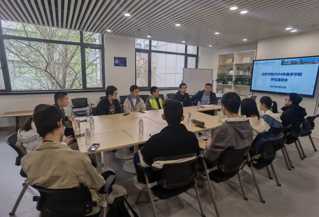 为提升化学学院教学质量,切实了解学生学习生活情况,4月10日下午,化学学院召开本科生学业座谈会。本科教学副院长田东亮老师、党委副书记张绍丽老师、教务王婷老师及本科生代表参加座谈。