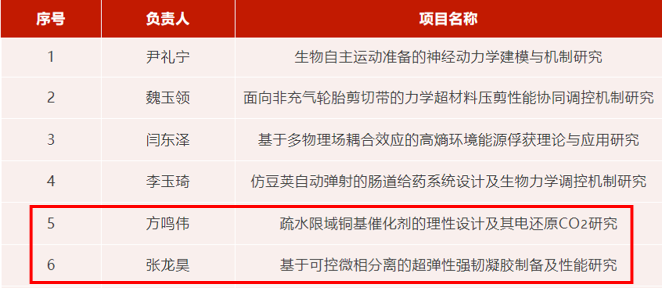 近日,国家自然科学基金委员会确定了2023年度国家自然科学基金青年学生基础研究项目(博士研究生)的立项名单。化学学院博士研究生张龙昊(导师刘明杰)、方鸣伟(导师朱英)的项目荣获批准资助!
