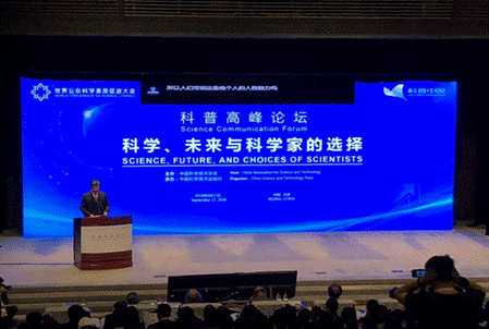 世界公众科学素质促进大会——中国科技峰会于9月17日在北京国际会议中心召开,化学学院2018级研究生集体参加科普高峰论坛。论坛以“科学、未来与科学家的选择”为主题,出席本次论坛的嘉宾有诺贝尔奖获得者Eric Maskin、Duncan Haldane 、中村修二、James Fraser Stoddart和克隆羊多利之父IanWilmut 及中国科学院院士褚君浩先生和周忠和先生,怀进鹏院士担任主持人。