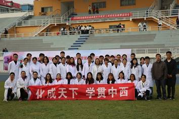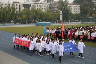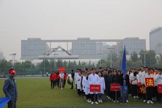在22号上午的开幕式上,化学学院方阵的成员身着统一的队服,代表着我们专业别具一格的特色,迈着整齐的步伐,带着昂扬的气势通过主席台前;他们在主席台前喊出洪亮的口号“有机无机搜遍天下,强健体魄建设中华”,表达了化学学院学生对学科的和体育的热爱。他们个个精神饱满,朝气蓬勃,展现了化学学院的良好风貌。