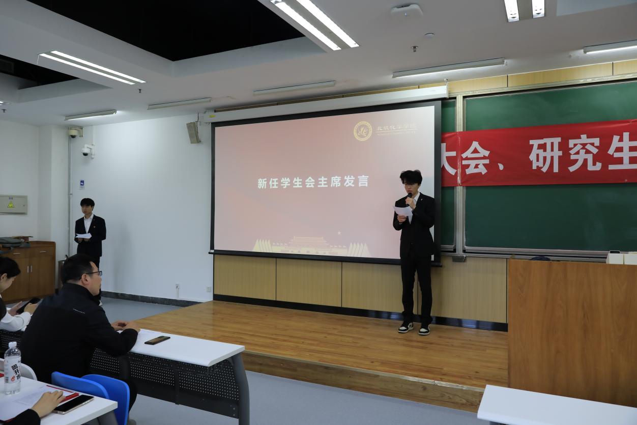 学生会主席和研究生会主席分别进行了发言。四位主席均表示会牢记学生工作的责任感和使命感,更好地服务广大同学,书写化学学院学生会和研究生会的新篇章。