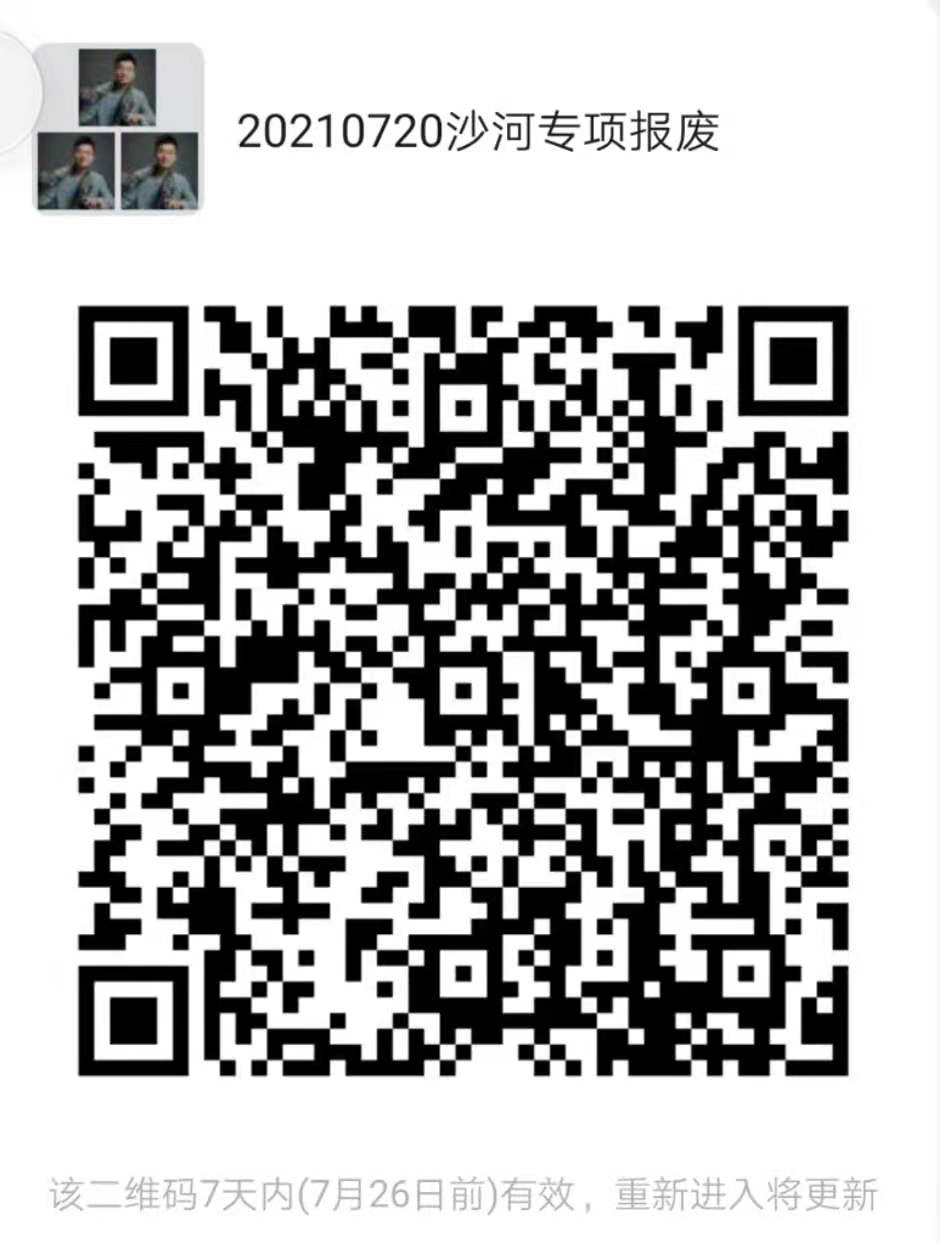 请申报人点击下方链接申请报废,http://app.cq5520.com/site/form/formtemplat?formid=1472,请申报人安排报废专项对接人扫描附件二维码进入专项工作组,学院计划明日(7月20日)上午十一点在沙河校区集中收取报废设备及家具。