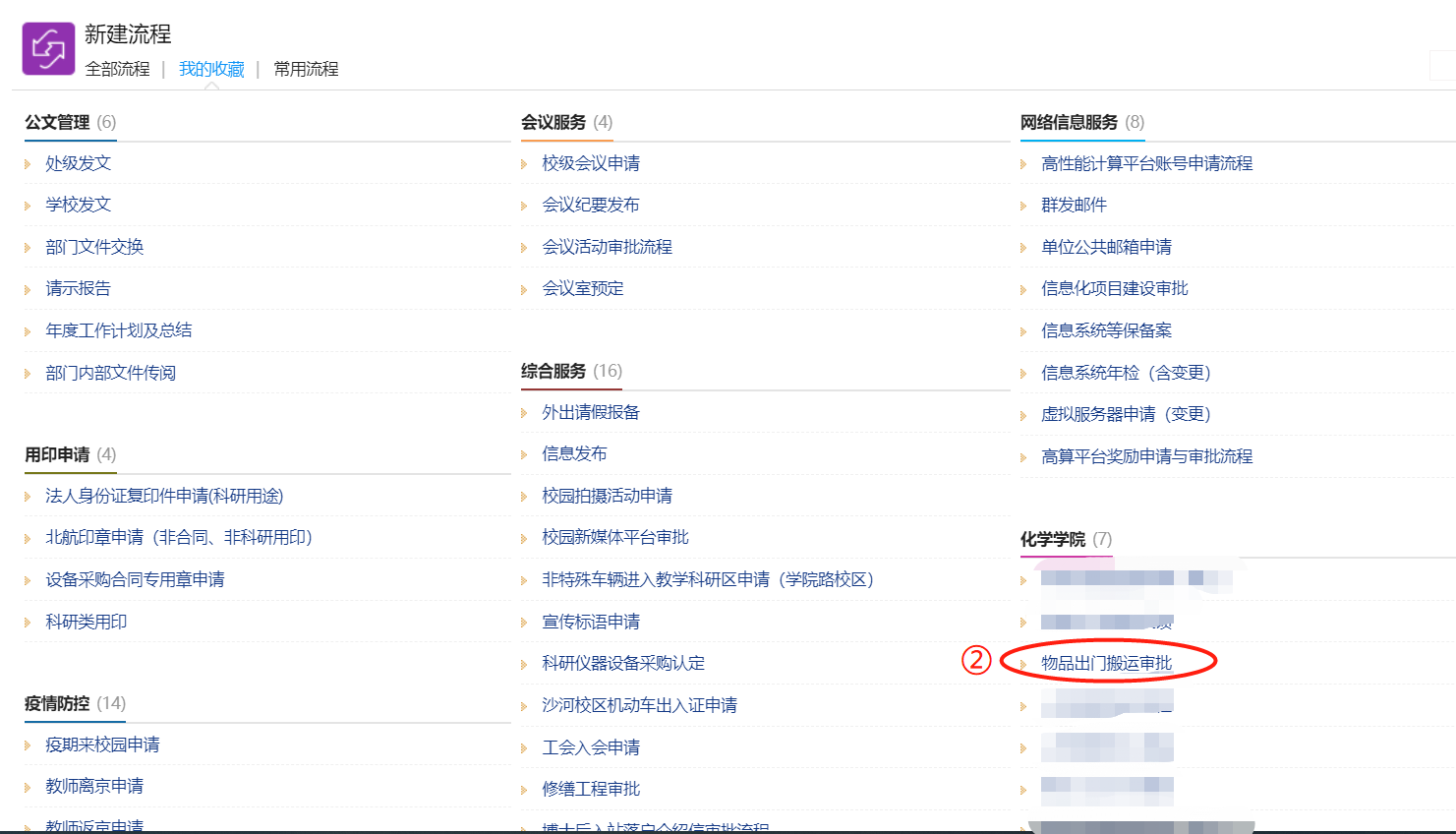 3.页面右下角,化学学院专栏,点击物品出门搬运审批;